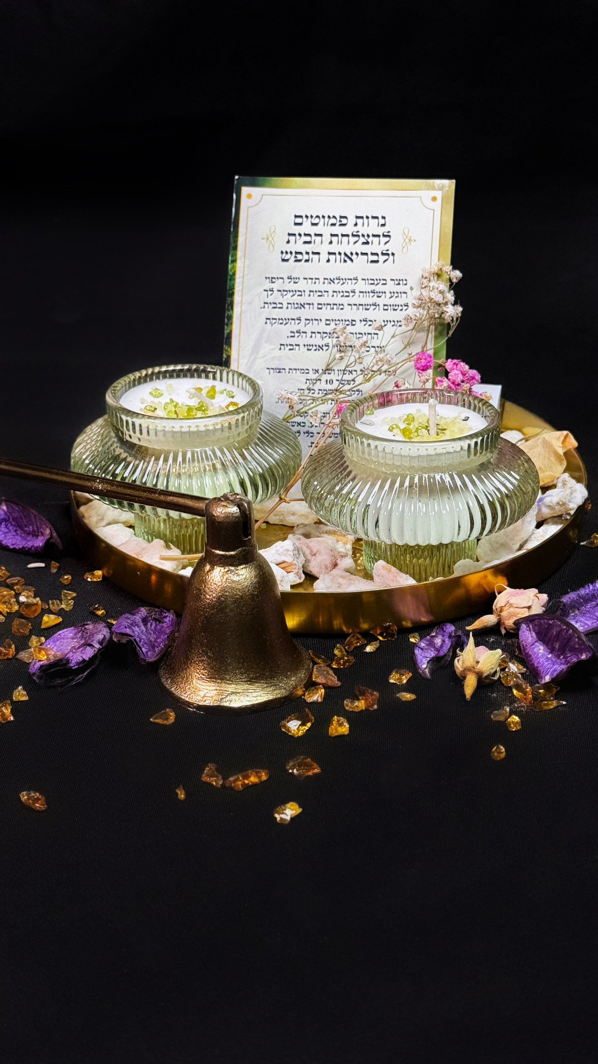 נרות פמוטים להצלחת הבית ולבריאות הנפש. נוצר בעבור להעלאת תדר של ריפוי רוגע ושלווה לבנית הבית ובעיקר לך לנשום ולשחרר מתחים ודאגות בבית.